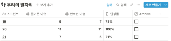 20번이 넘는 스프린트를 진행하는동안 모두 목표를 향해 멋지게 달려주시고 있습니다!